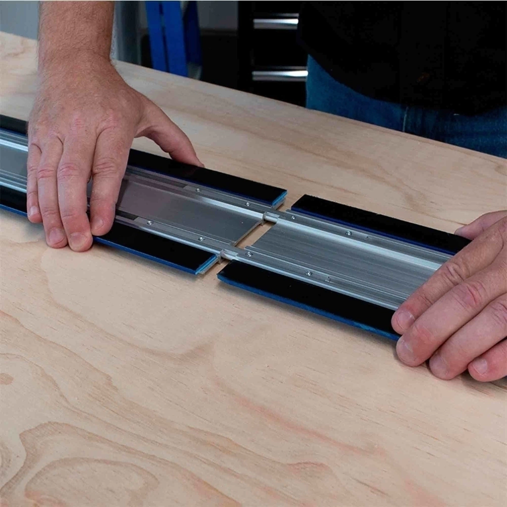 Guía diseñada para cortes longitudinales y en ángulo de hasta 100" de largo. Sus tiras de guía antideslizante permiten mantenerla en su lugar sin necesidad de abrazaderas, lo que facilita el trabajo y mejora la precisión. Elimina la necesidad de marcar líneas de medición y diseño, ahorrando tiempo y esfuerzo. Es compatible con la mayoría de las sierras circulares y dispone de una guía de borde reversible, adecuada para usuarios tanto diestros como zurdos.