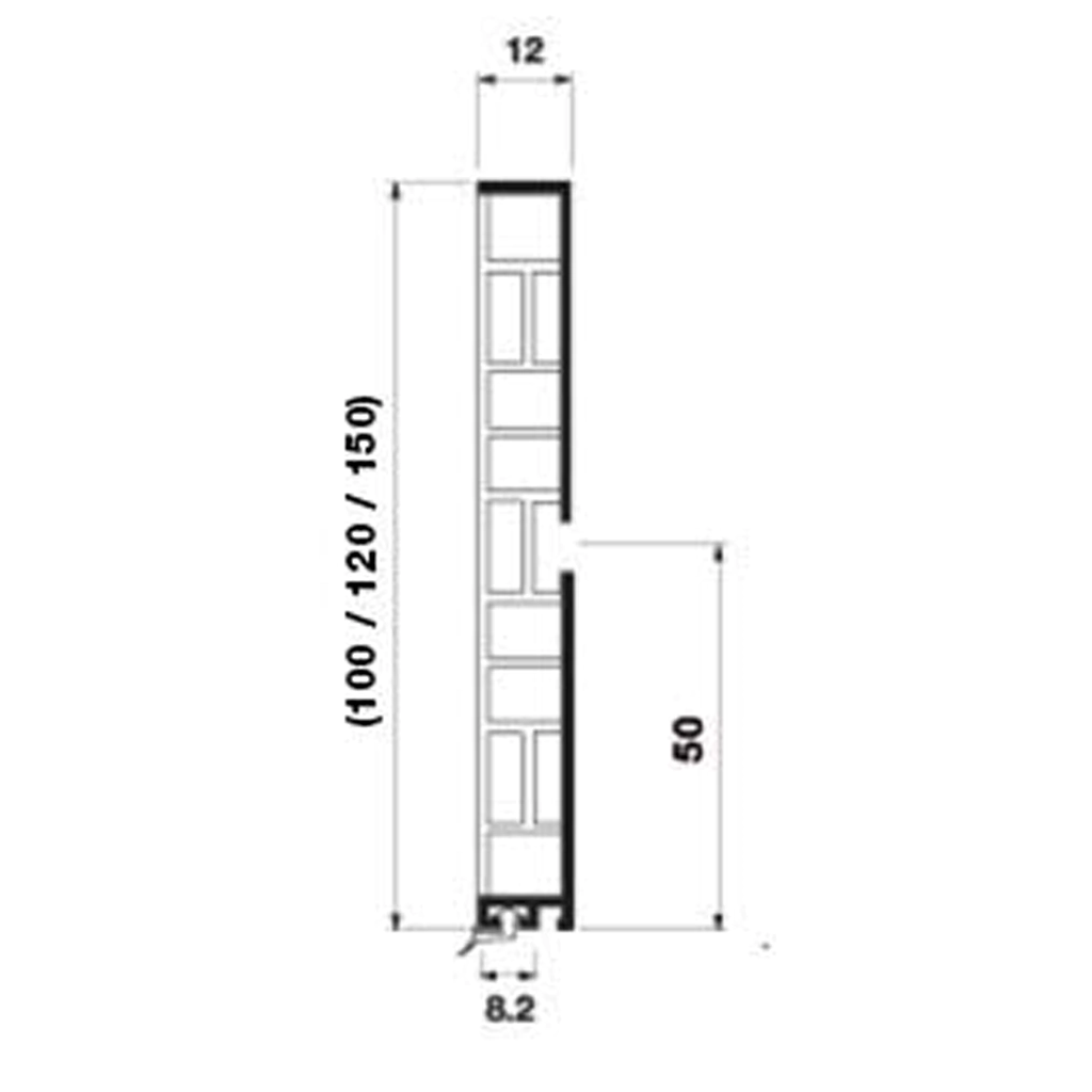 Perfil de 3 metros diseñado para revestir la estructura inferior de muebles. Ideal para aplicar sobre clips plásticos, ofrece una combinación de resistencia y estética con un acabado en acero fino y un color negro elegante.